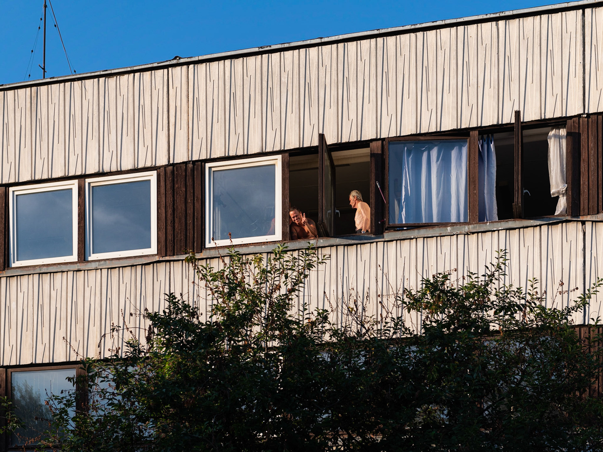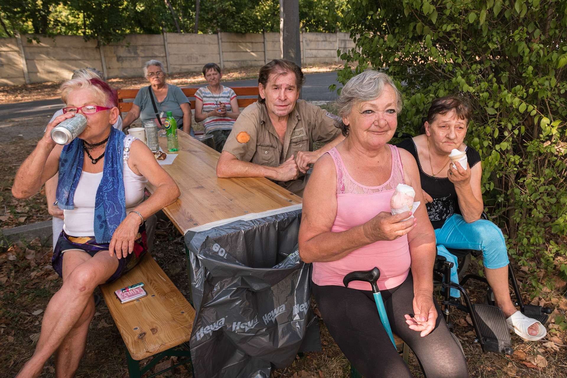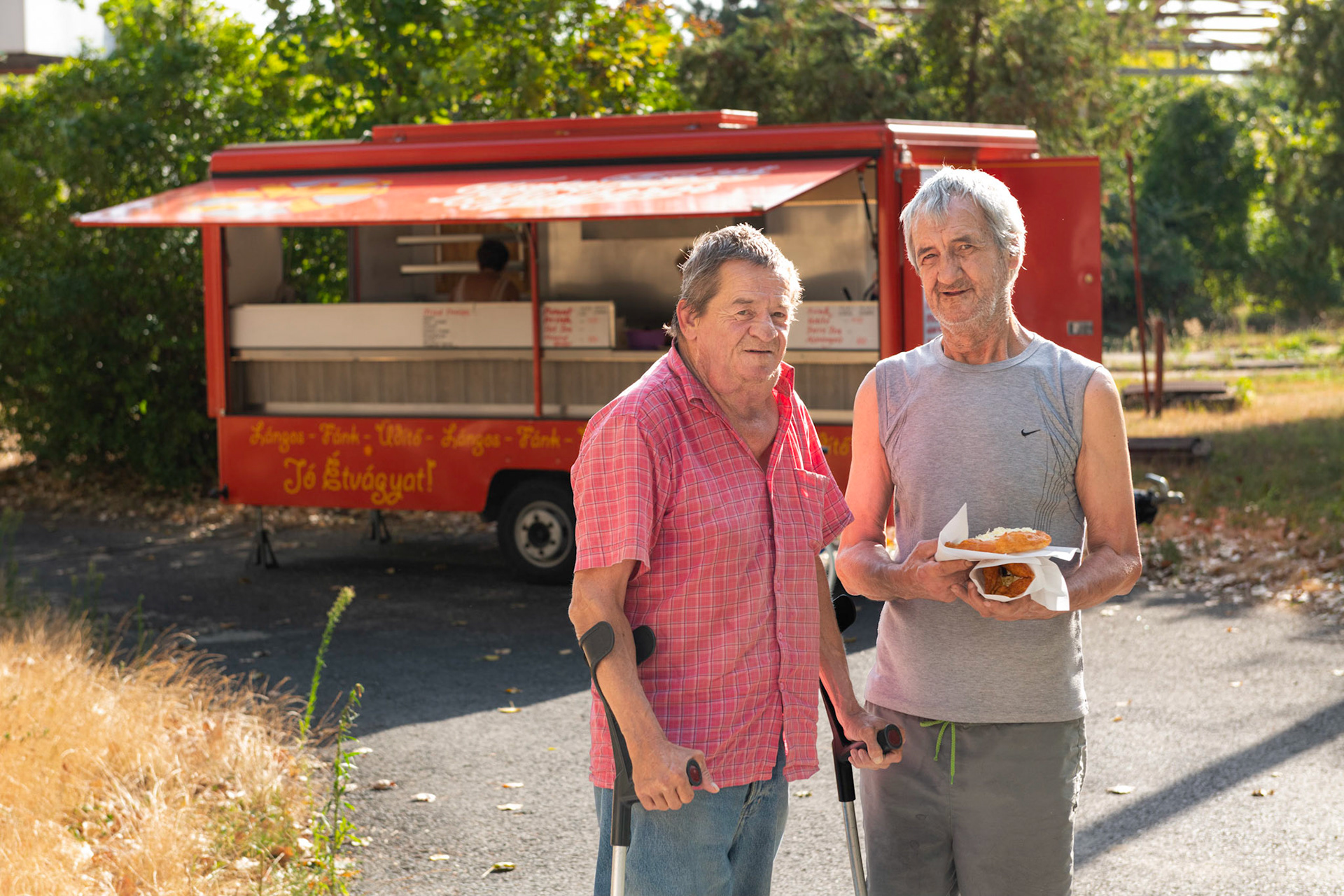 A Magyar Vöröskereszt Madridi úti szállóján csak férfiak tartózkodhatnak, és igen szigorúak a feltételek. Sokuknak van bejelentett munkája, és fizetnek a szálláshelyért, ám a magas albérleti árak nagyon megnehezítik a továbblépést egy saját otthon irányába.A BBM "Nekem a Balaton" rendezvényein nagyon örültek a strandolás érzetét nyújtó medencének és nyugágyaknak.
