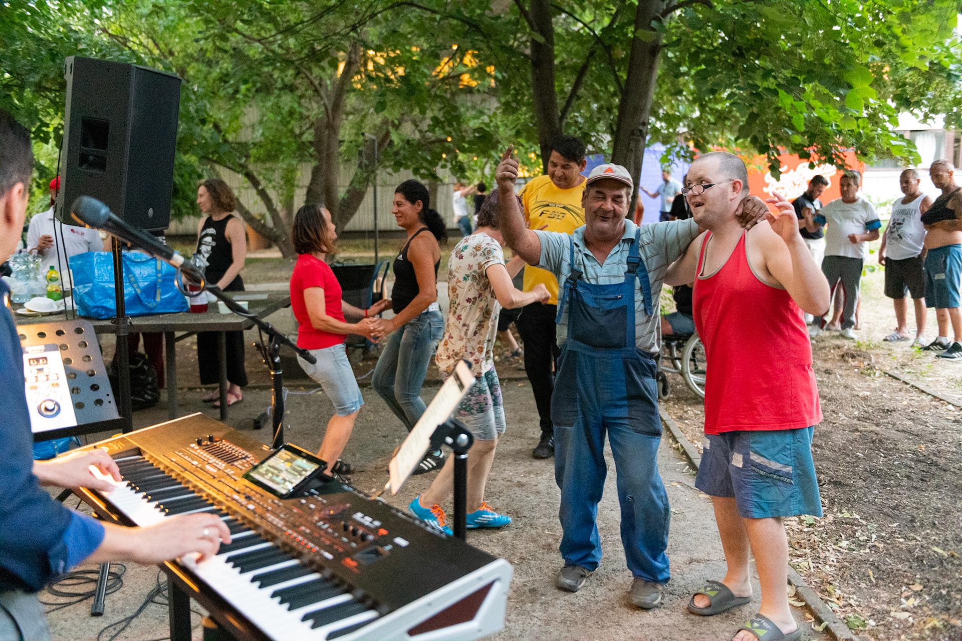 "Hölgyem, szabad egy táncra?" A zenét a BBM egyik önkéntese szolgáltatta a Táblás utcai átmeneti szálláson, ahol alacsony jövedelemből élő, mentális nehézségekkel küzdő hajléktalan férfiaknak és nőknek nyújtanak szakszerű ellátást.