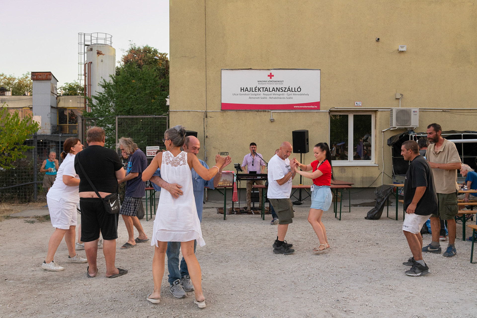 A szállókon lakók jellemzően elég zárkózottan, izoláltan élnek. A kirakott asztalok és padok lehetőséget teremtettek ahhoz, hogy az ottlakók egy kicsit egymást is jobban megismerjék.Veres István által szolgáltatott jó mulatós zene pedig segített az oldott hangulat megteremtésében.Minden este vastapssal búcsúztatták.